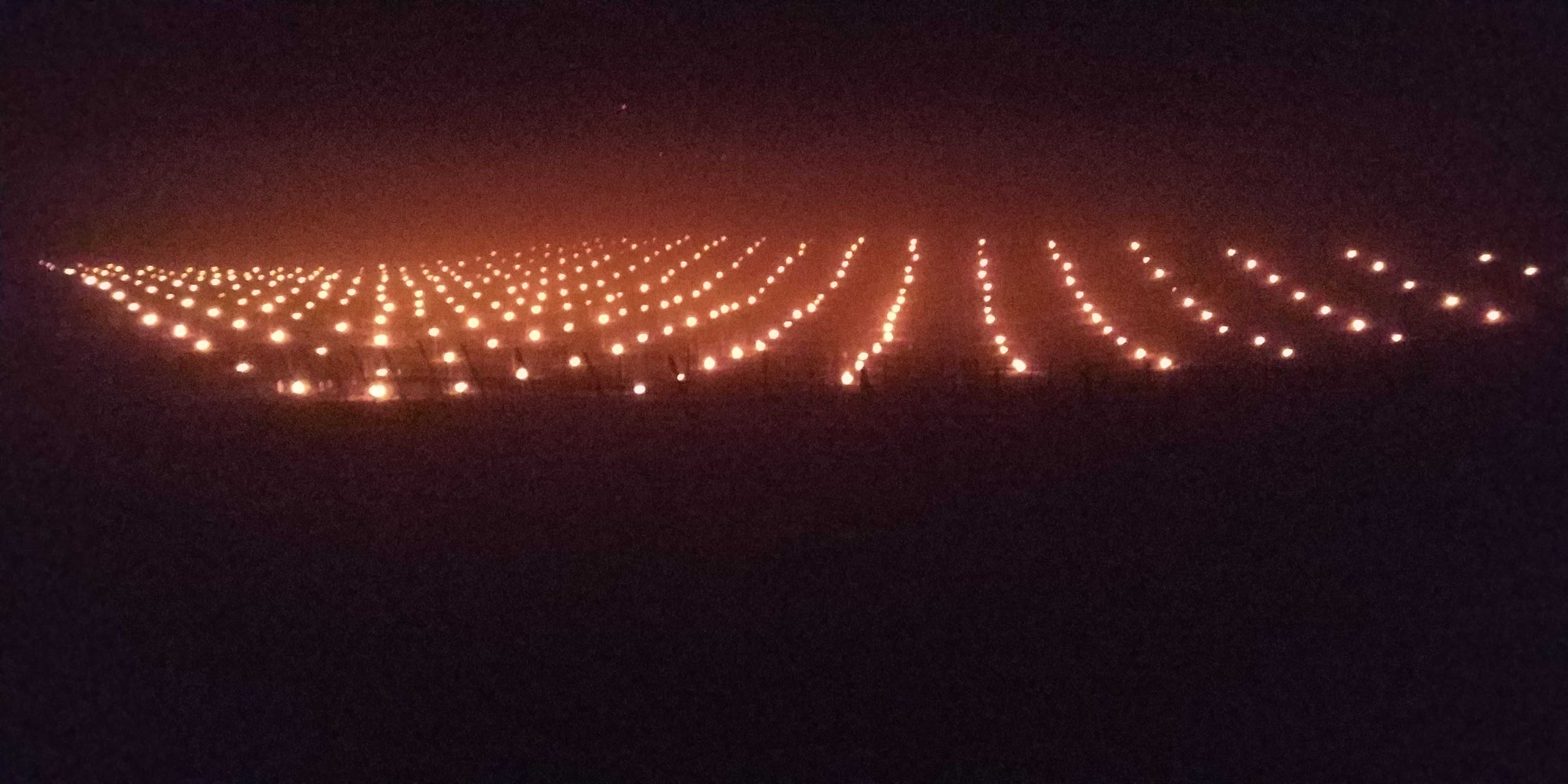 El ensayo dejó una imagen muy curiosa que es muy común de ver en los viñedos franceses durante esta epoca del año. El empleo de estas velas busca el subir la temperatura del viñedo en época de heladas, condiciones climáticas adversas cuando la vid se encuentra en estado de brotación.