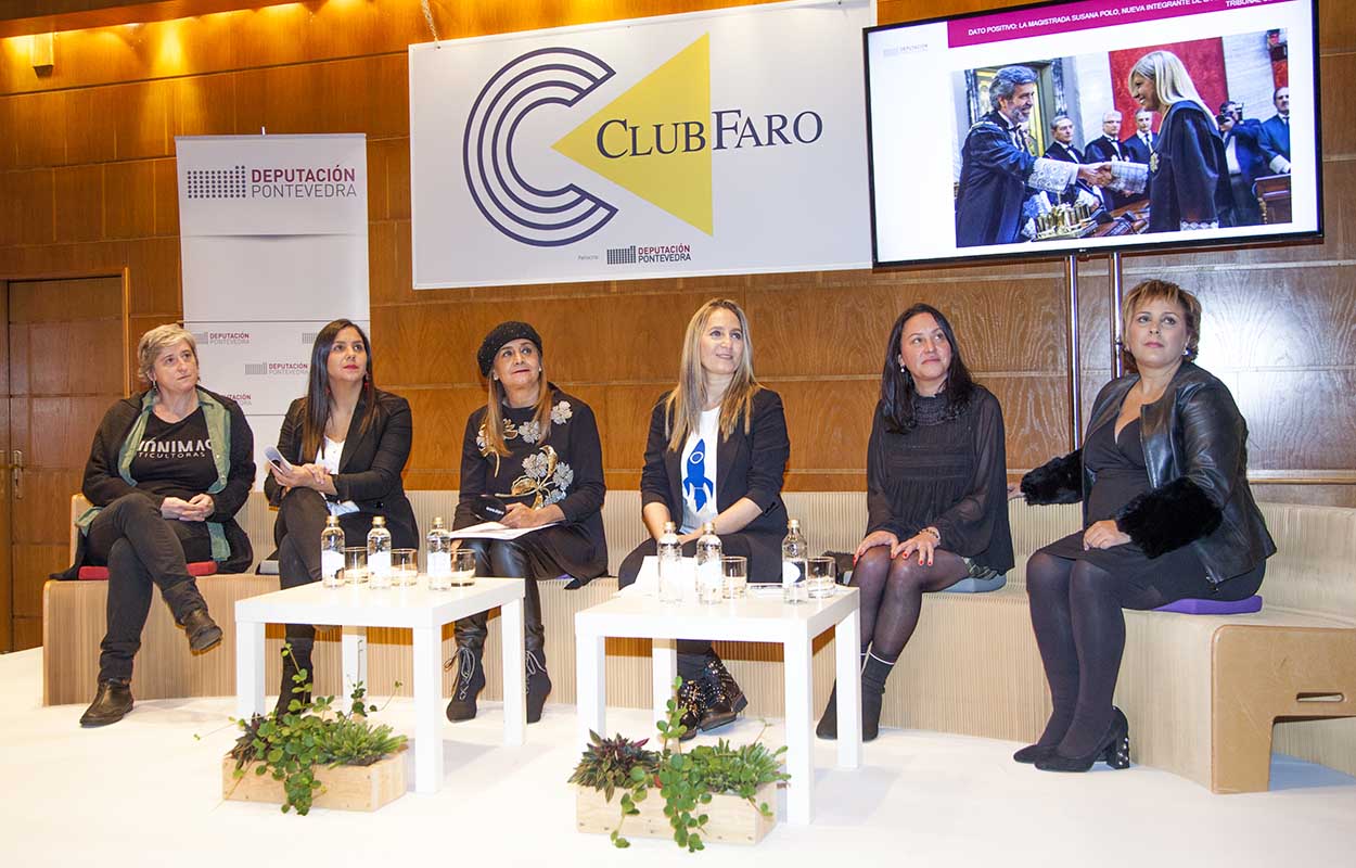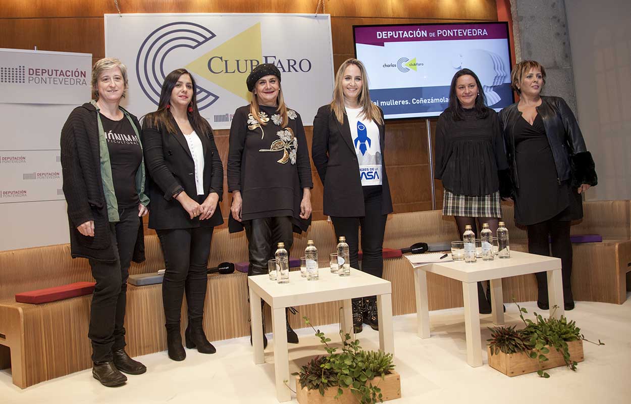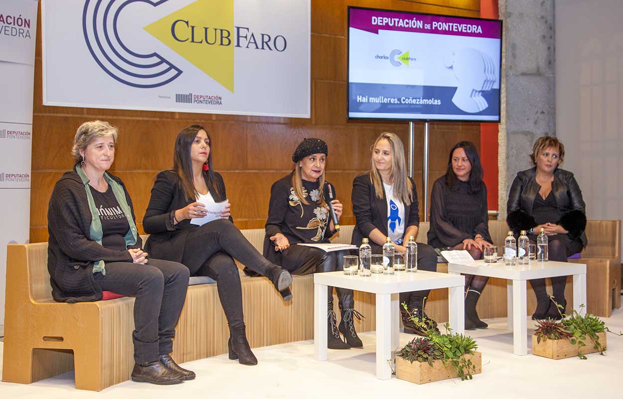 La presidenta de la Diputación de Pontevedra, Carmela Silva, condujo la jornada celebrada en Vigo, en el marco del Club Faro, «Hai mulleres. Coñezámolas», en la que participaron cinco profesionales de diferentes ámbitos.