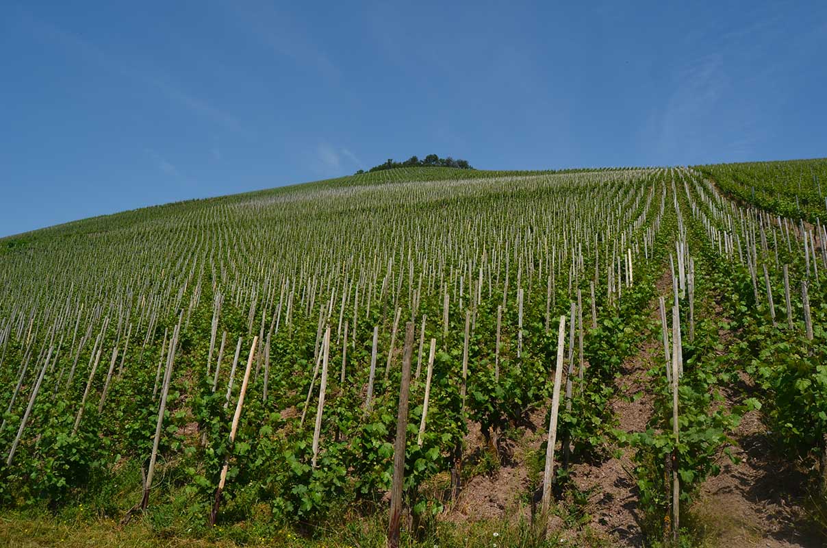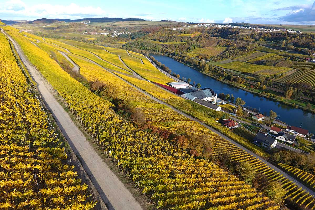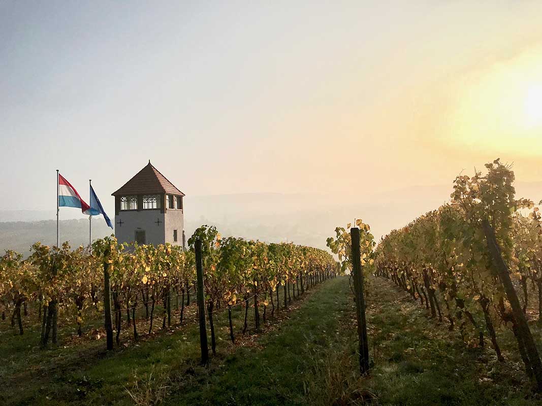 Seguimos nuestro descenso por el Mosela en el último tramo antes de que éste marque su deriva hacia el este. Sus apenas 40 km de recorrido en el Gran Ducado los comparte con Alemania, así que nos centraremos en su paso por la orilla izquierda. Aunque sus viñedos son menos reconocidos que los de sus vecinos franceses y ya no digamos los alemanes, Luxemburgo goza de la misma tradición ancestral en materia de viticultura, contando a día de hoy con 1.246 hectáreas de viñedo, 340 bodegas y produciendo anualmente más de 16 millones de botellas. Ya en 1935 implementaron la “Marque Nationale” para proteger la identidad y calidad de sus vinos aunque por conversión europea el sello que hoy en día certifica el origen de las botellas es el de la AOP Moselle Luxembourgeoise.
