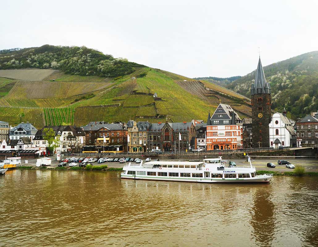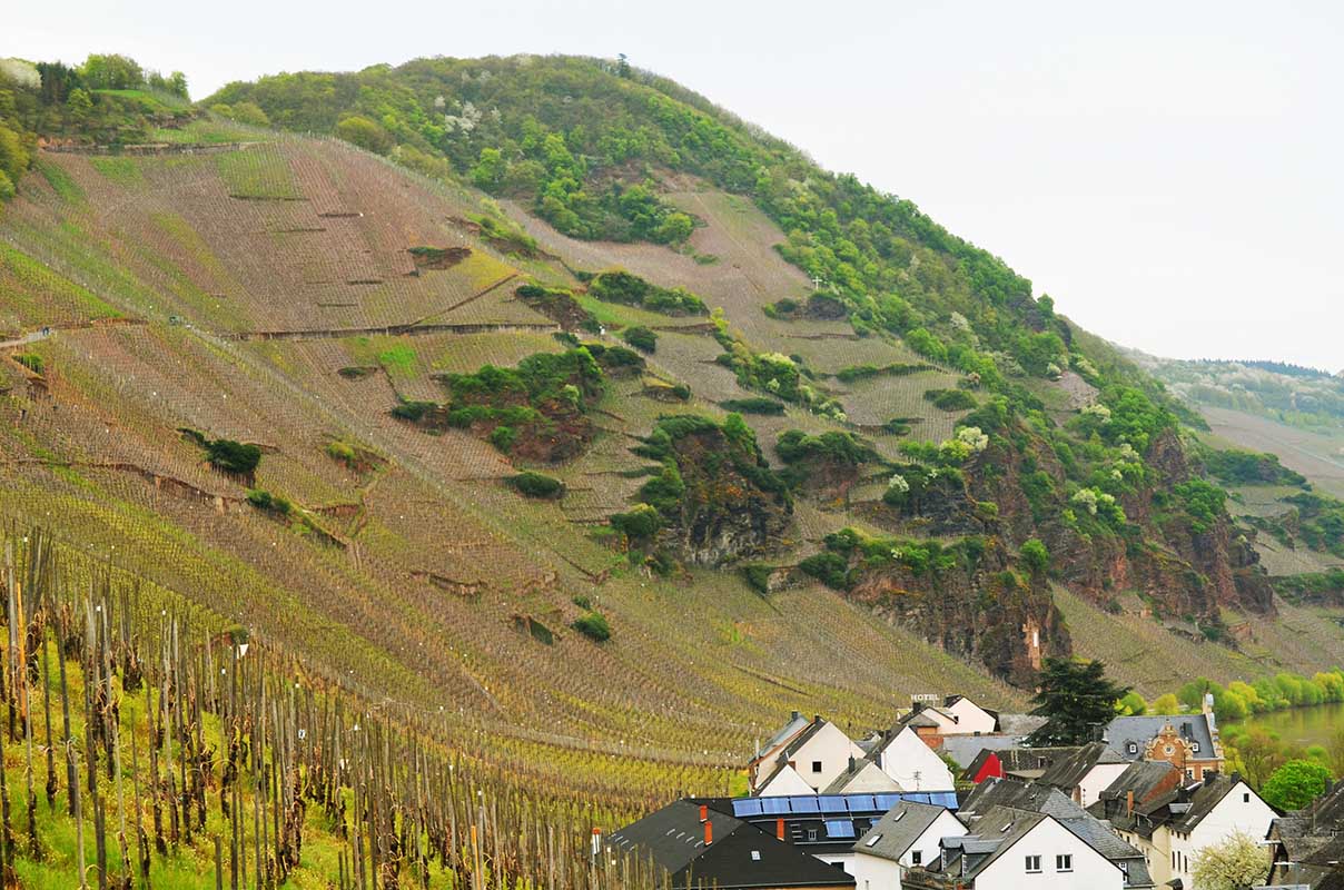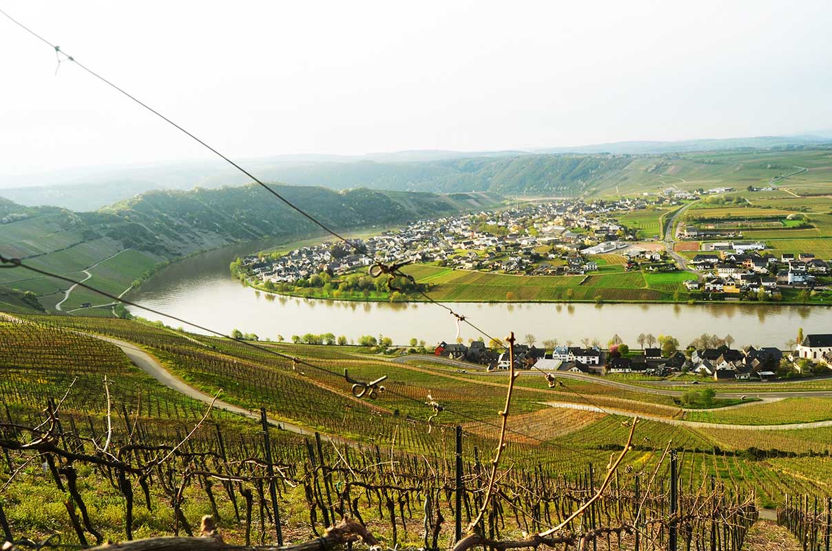 Si hay un río cuyo nombre está estrechamente vinculado a la producción de vino, ese es el Mosela. Las aguas de este modesto pero emblemático río, recorren tres países y riegan numerosos viñedos antes de alimentar al gran Rin. Aunque la mayor parte de sus 540 km. de longitud transcurren en suelo francés, su gran atractivo turístico se concentra en el Mosela alemán gracias al sinuoso trayecto, a su genuina arquitectura y a un paisaje vitivinícola único.
