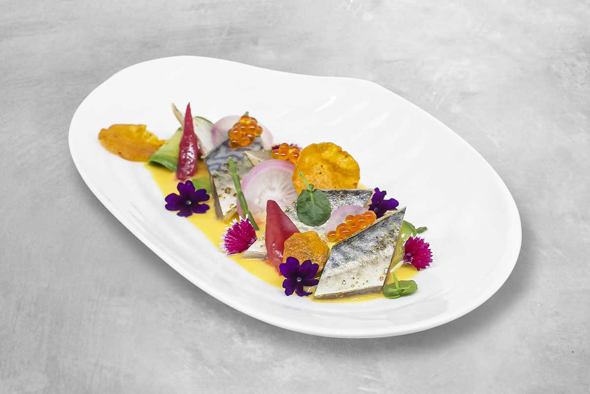 - Mandarin Oriental, Barcelona (Banker’s Bar): caballa marinada, alga salicornia y salsa cítrica de mango