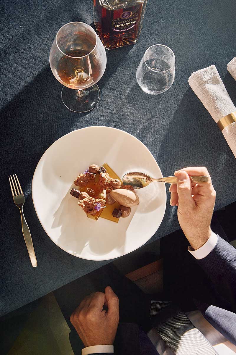 Los comensales podrán encontrar platos emblemáticos de la cocina mediterránea como “Foie Grass Fundador 18 años acompañado de bizcocho de pimienta y canela”, “Guisos de temporada”,  “Mero asado con beurre blanc, caviar y judías confitadas”, “Molleja de ternera glaseada, salsa chamoy de kumquat y anisados” y postres reinventados como la “Tarta de queso cremosa con confitura de arándanos” o el “Limón cítrico en texturas” entre otros, preparados con maestría, presentados de manera creativa, con técnica  y utilizando ingredientes nacionales de la más alta calidad.