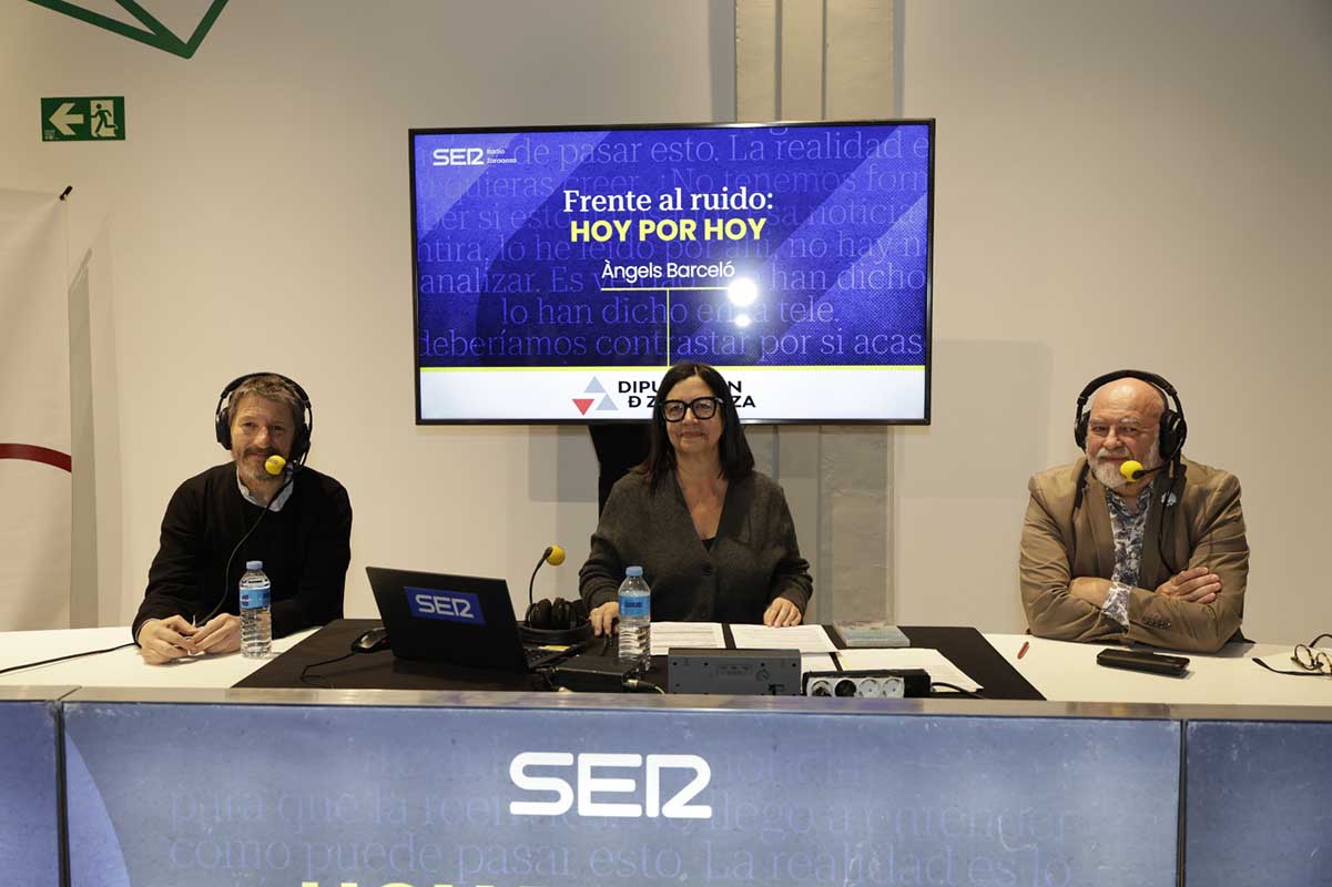 El territorio de la Denominación de Origen Cariñena y sus “vinos que nacen de las piedras” han sido hoy protagonistas de “Hoy por hoy”, el matinal de Cadena SER dirigido y presentado por Àngels Barceló. El programa líder en audiencia de la radio nacional (más de 3,4 millones de oyentes diarios en el último trimestre) ha trasladado su estudio al renovado Cariñena WineMuseum, desde donde la presentadora y su equipo han ofrecido distintos contenidos y entrevistas especiales, como una entrevista con el presidente de la D.O. Cariñena, Antonio Serrano, quien ha señalado que “las piedras, las variedades autóctonas de Aragón y el cierzo son las claves de la ecuación perfecta que imprime el carácter único a nuestro vino”.